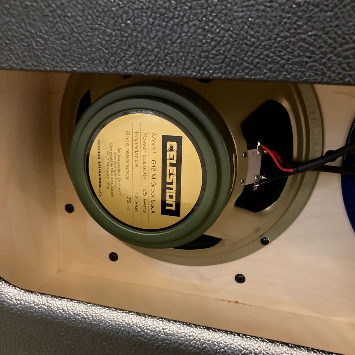 セットとなるキャビネット(12インチ2発のスピーカー)には、Celestion Green Back と Blue Alnico (オプション)と異なったスピーカーをセレクト。アグレッシブなミッドレンジを持つ グリーンバックに、煌びやかなトレブルのベルトーンを持つブルーアルニコを組み合わせることで、クリーンからドライブまで妥協の無いトーンを演出。また、レコーディンづやライブでのマイキングの際もお好みで異なったスピーカーのチョイスが可能。