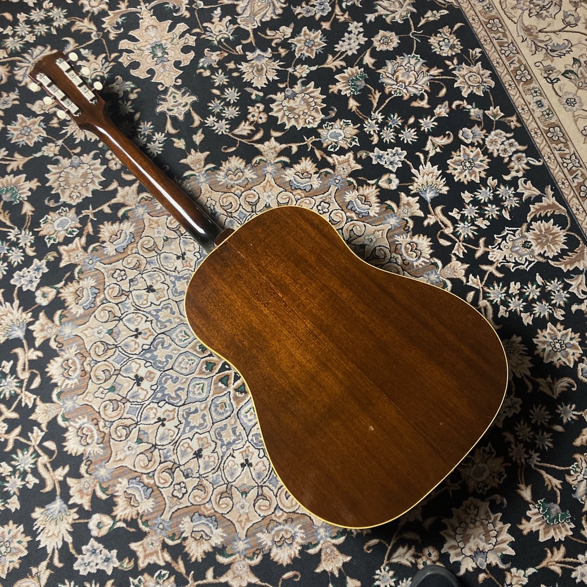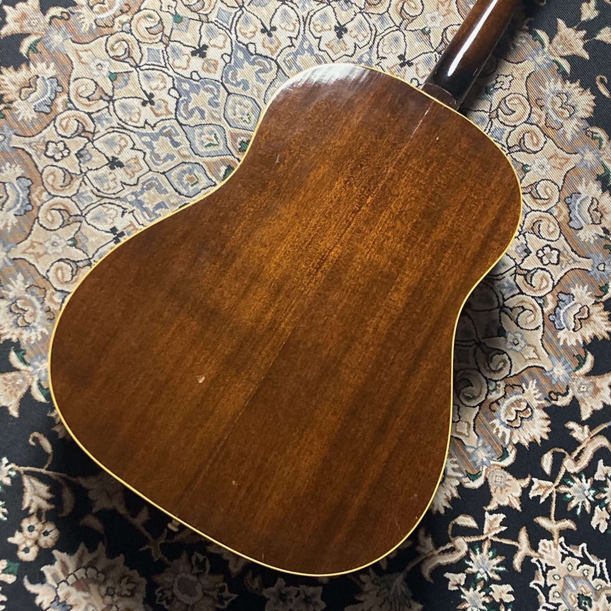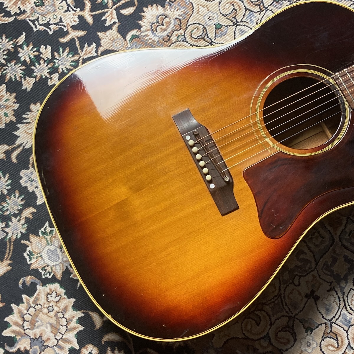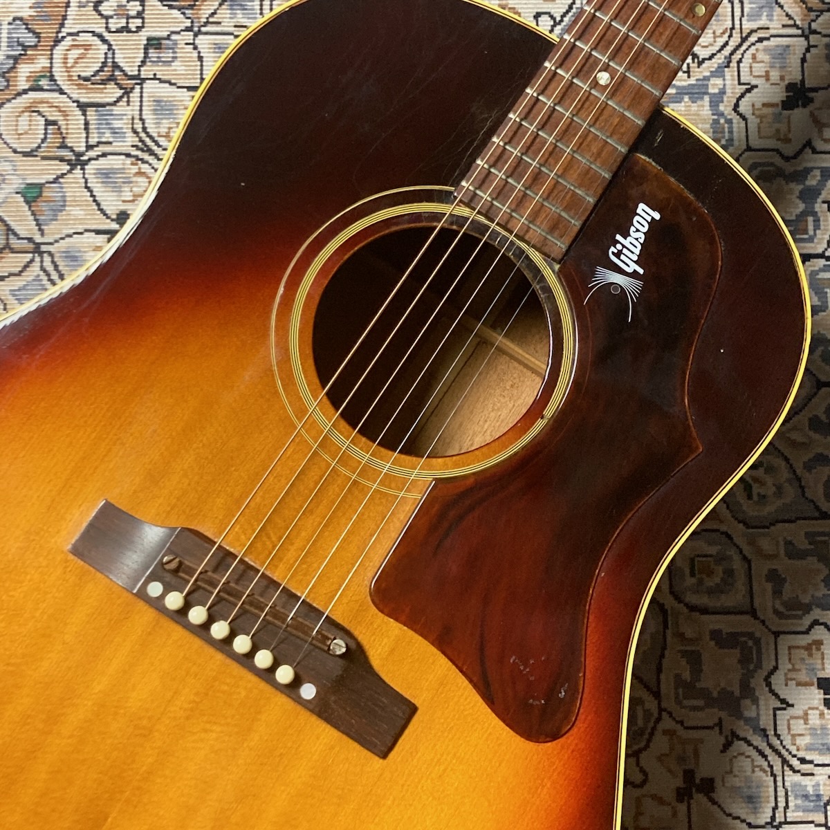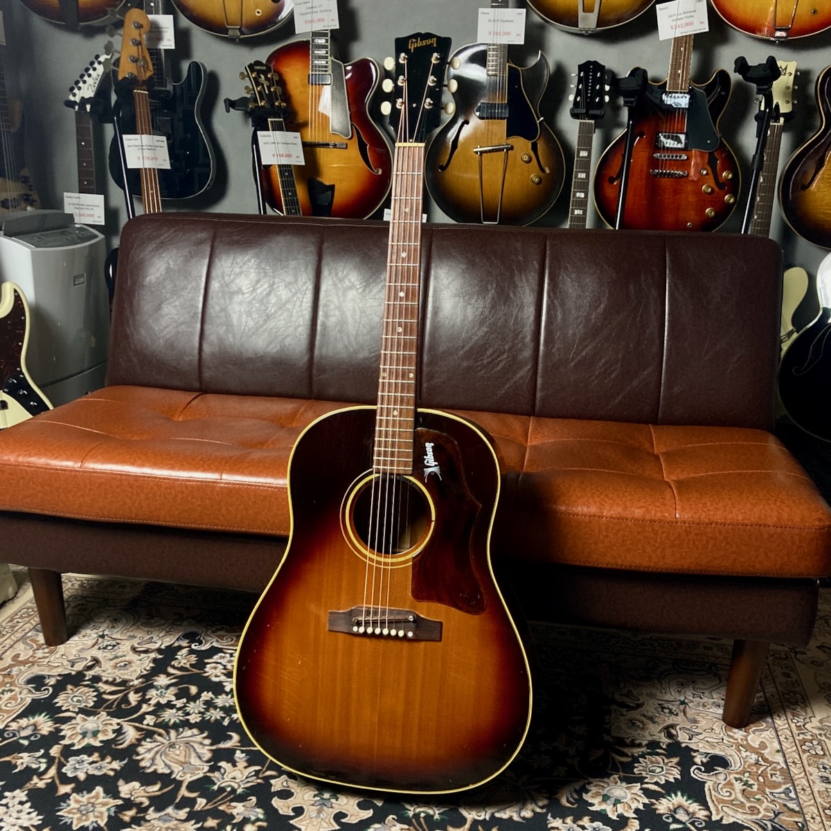 14度のヘッド角、ナット幅約39mmのナローネックにアジャスタブル・サドル、ロゴ入りのラージガードにダブルリング・ロゼッタ等が特徴の年式。さらに、この前年あたりからの復活となったブラウンカラーのサンバーストは、50年代とも違った色味がクールです。