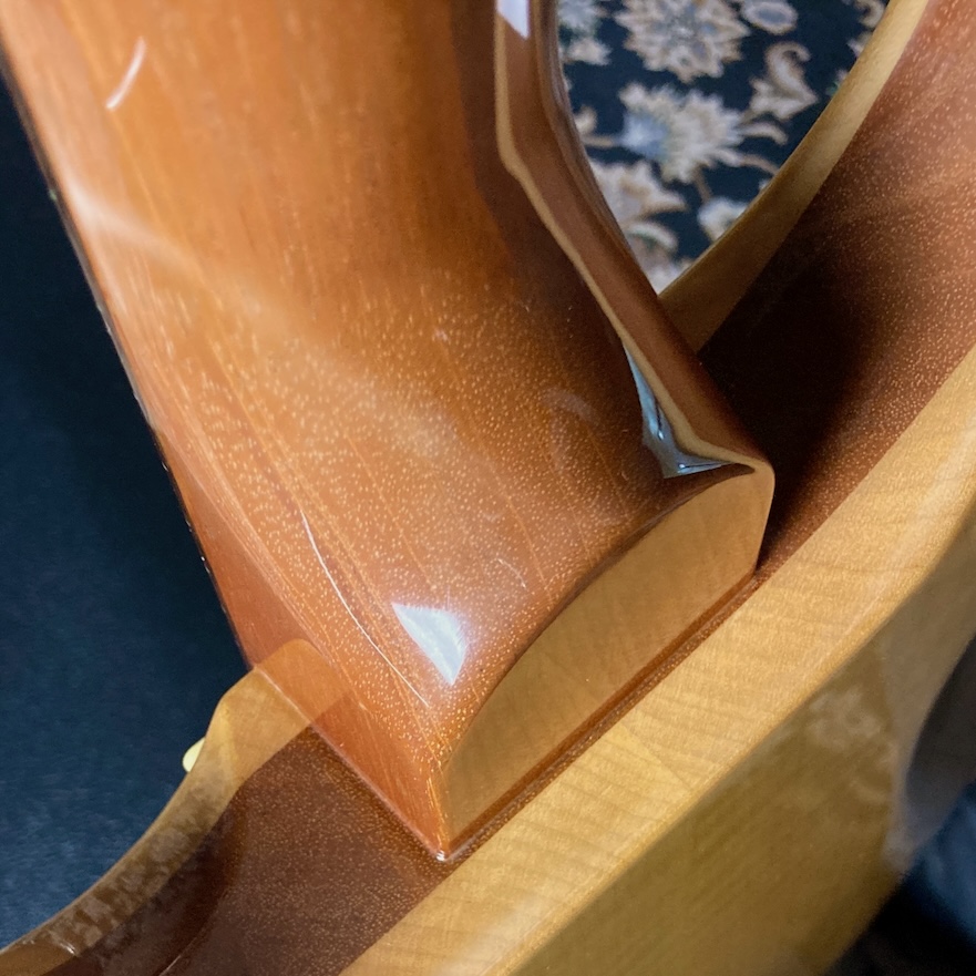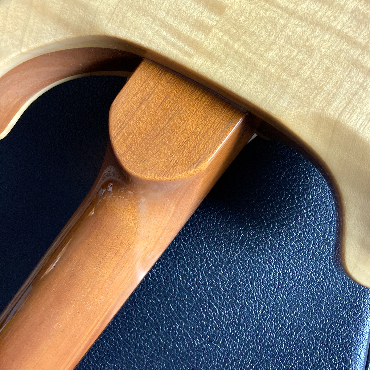 内部を除くとブロックもマホガニーがメイプルで挟み込まれています。