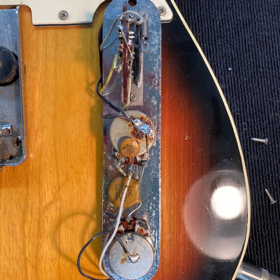 1Mのポットデイトは66年36週(Tone)、Vol ポットはハンダ修正と共に確認できませんがオリジナルと判断しています。