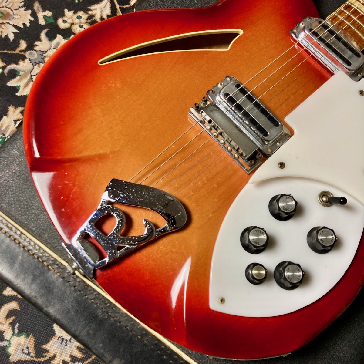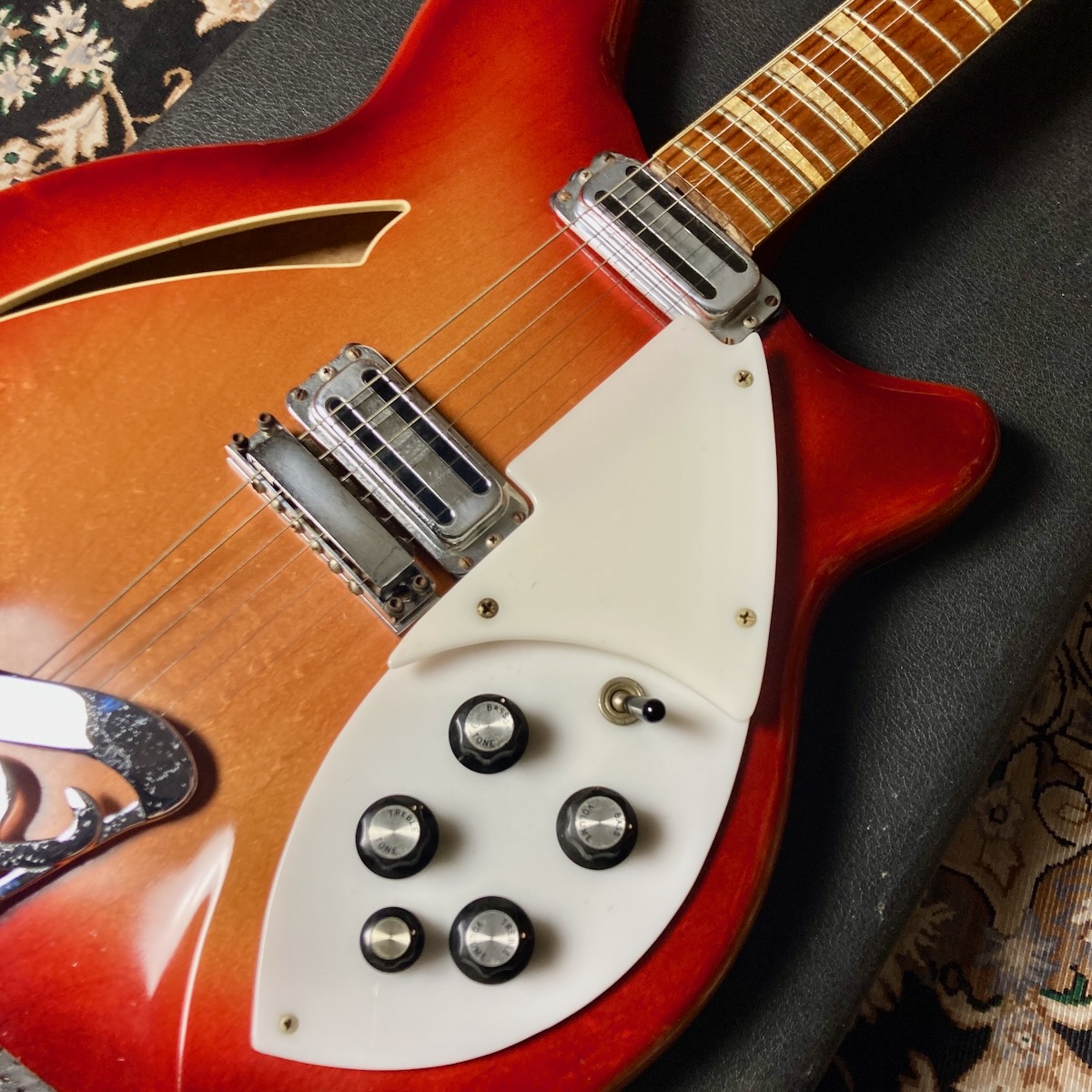 330のデラックスバージョンとして登場し、64年途中からの仕様となるラウンドボディー形状のRickenbacker Model 360。こちらはICのシリアルから1969年5月の生産と見られます。