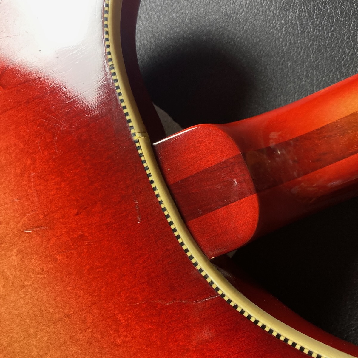 バインディングの修理痕や、年式なりの傷等ございますが、全体的に綺麗な状態でネックの状態も良好。