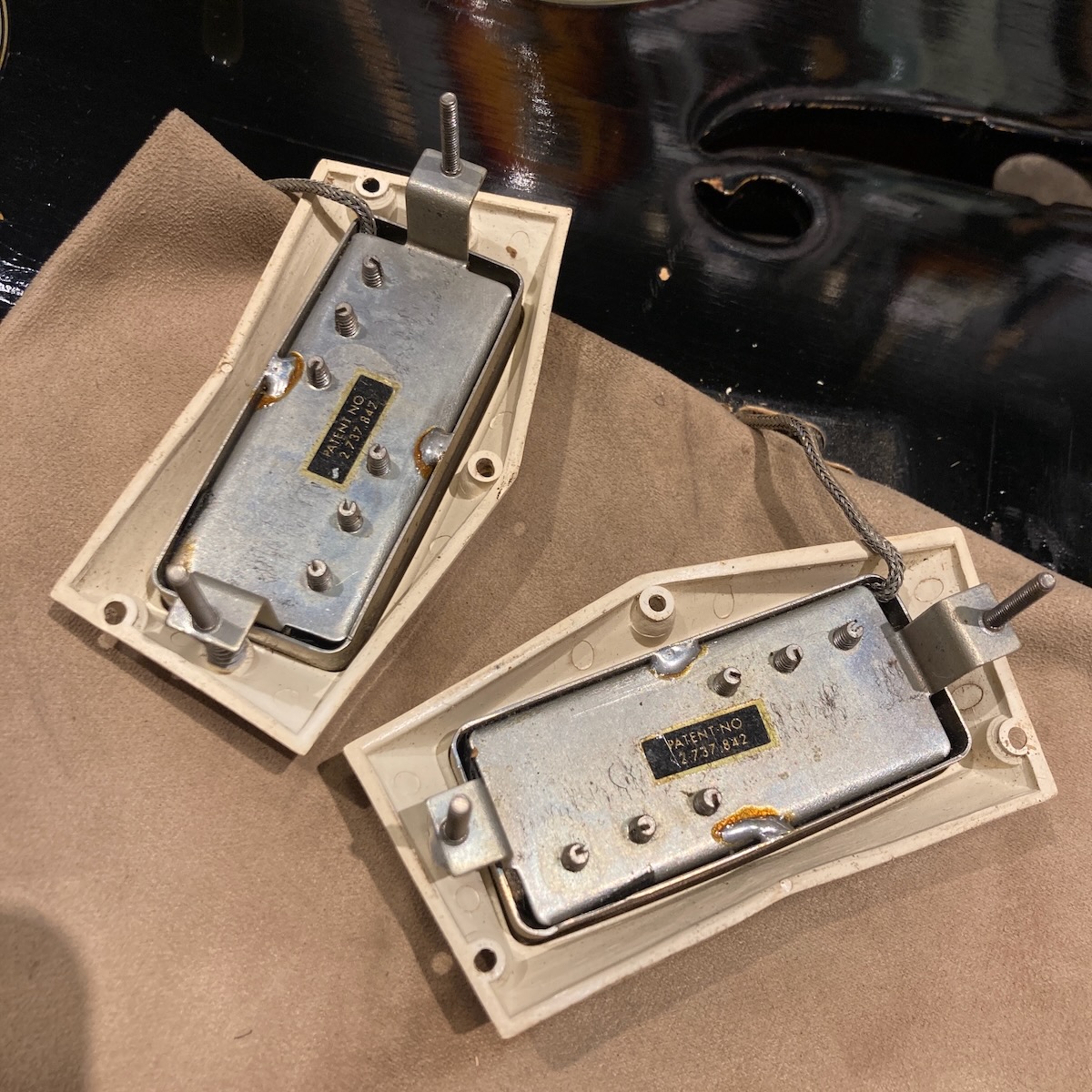 P.UはGibsonが当時にOEMで生産していたものと見られ、P.Uの裏にはお馴染みの「Patent Applied For」PAFステッカーが貼られています。低出力ながら太さを持ったナイスなマイクです。このP.Uのサウンドを聴きたければ、このギターを手にするしかないのでは。