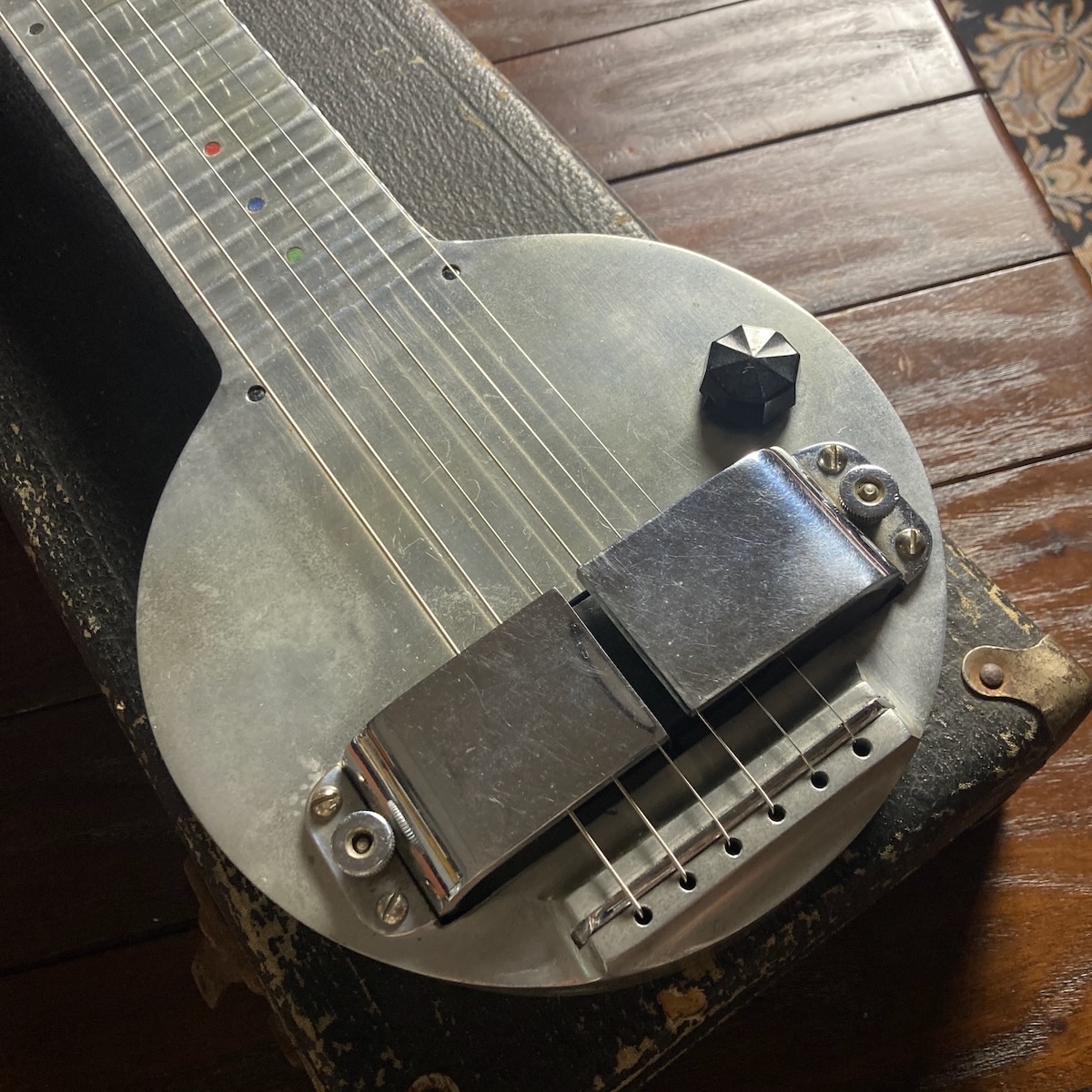 ソリッド・エレクトリックギターの原型として、歴史的な価値を持つRickenbacker Electroのラップスチール、初期型のフライング・パンです。