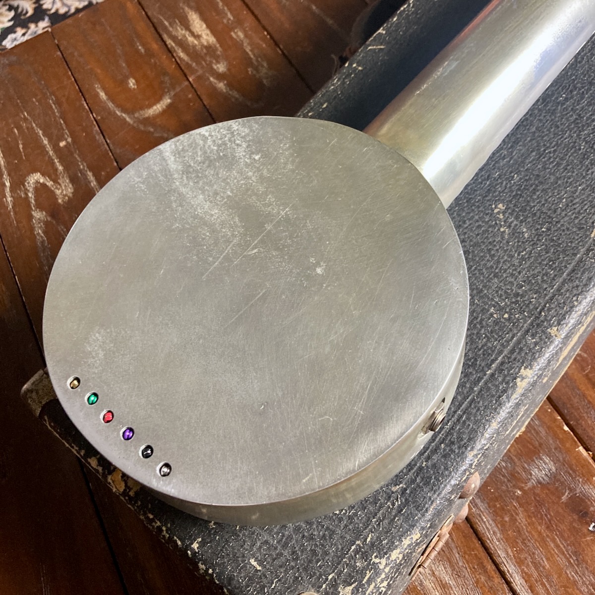 フレット位置の役割を果たす隆起した指板面とカラフルなインレイ・ドットマーカーを持ち、ネックはラウンド型を採用。本来はハワイアンスタイルのラップスチールですが、調整次第ではスパニッシュギター(一般的なギタースタイル)として演奏可能なスペックを採用しているのではないでしょうか。