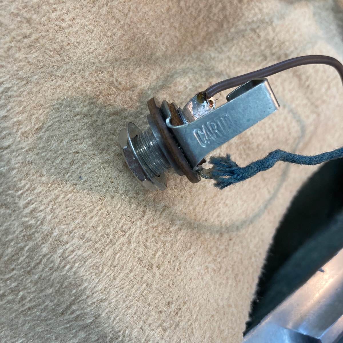 リッケンバッカーファンにはお馴染みのホースシューP.U、Volポット、ベークライトのノブ、アウトプット・ジャック、オープンギアのチューナー、分離した金属製のナットとサドル、ベークライトのノブ等、情報が少ないので断言は致しかねますが、基本的にオリジナルと見られます。