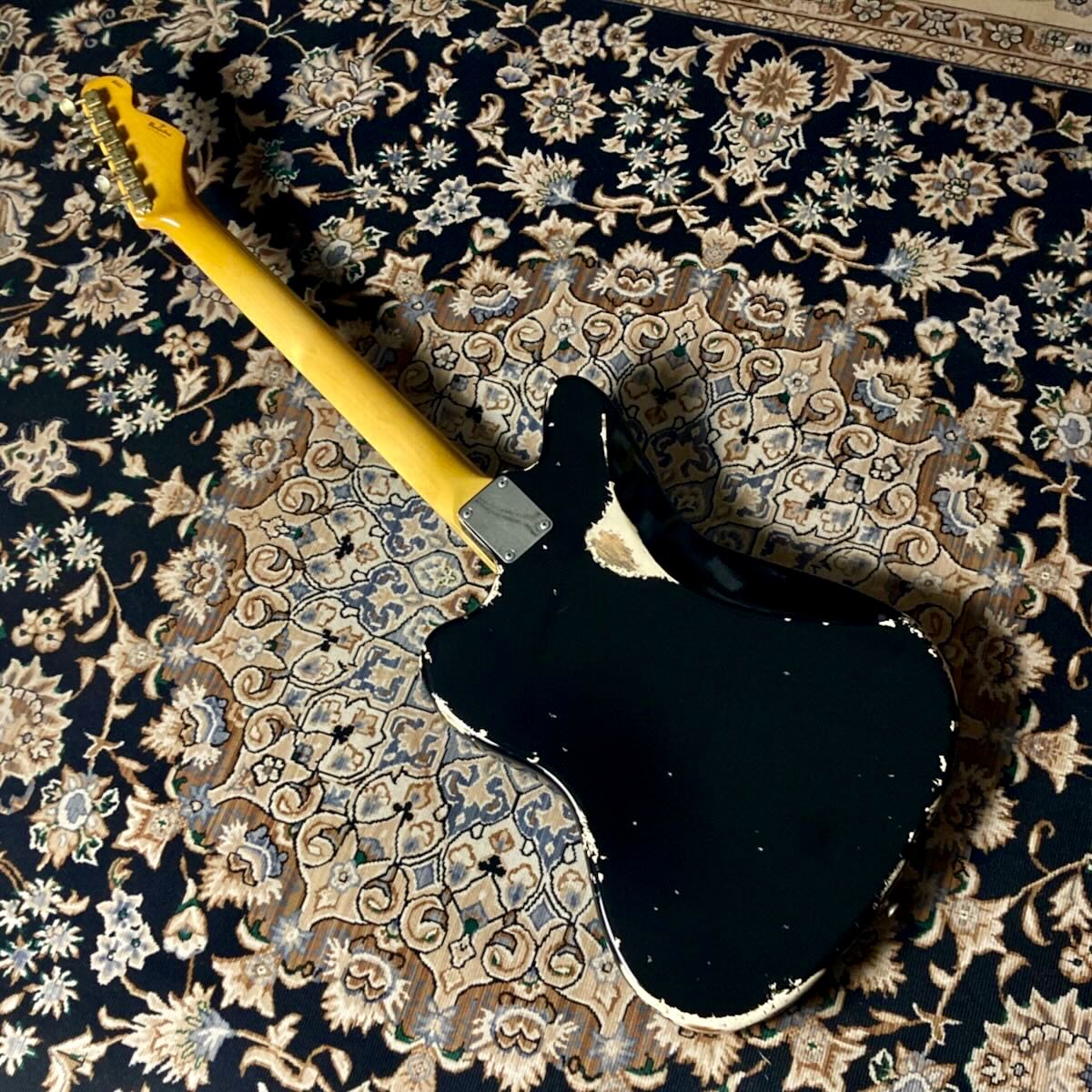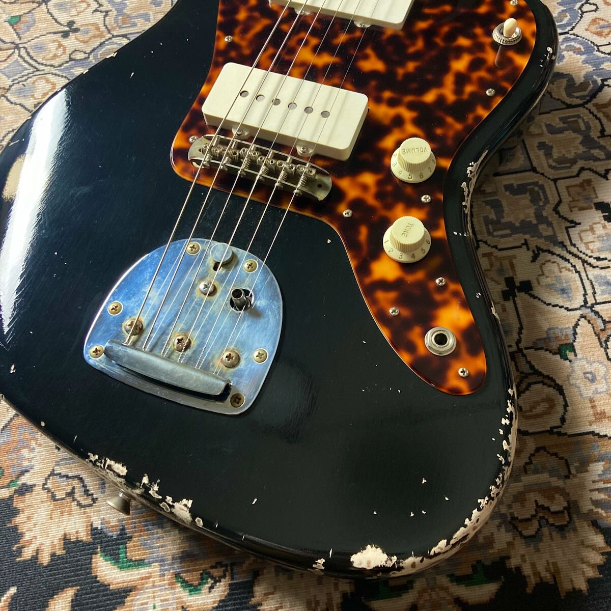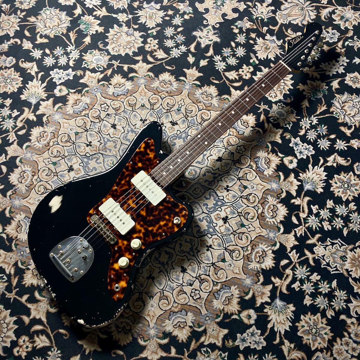 鼈甲柄ながらも、他ではなかなか見かけないレトロな風合いのピックガードに、細かなチェッキングとエイジド加工が施された/ブラックカラー/マッチングヘッドが見事に調和。
