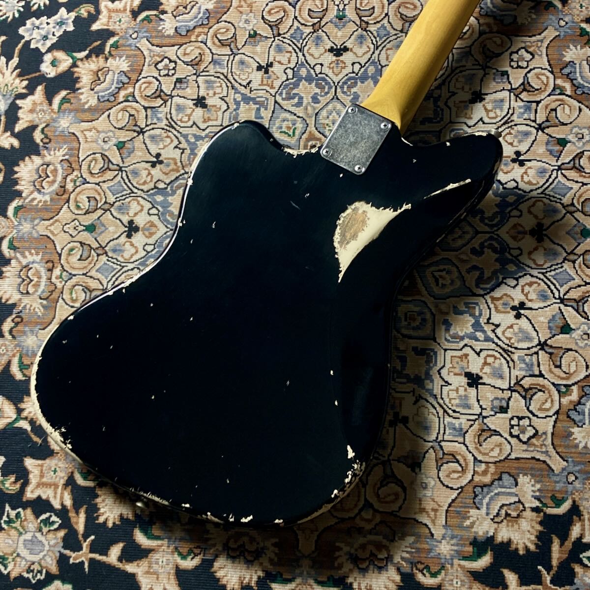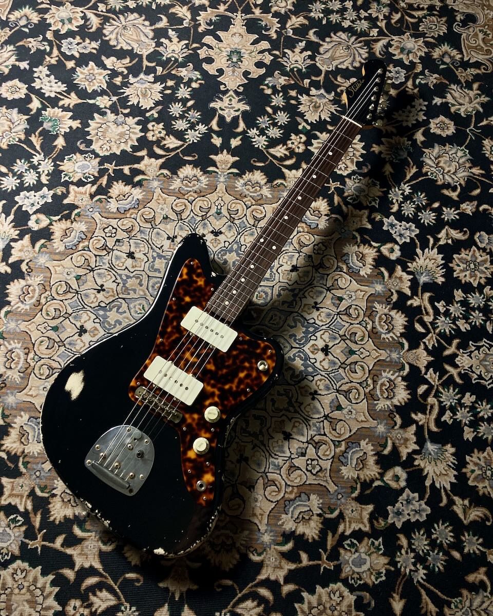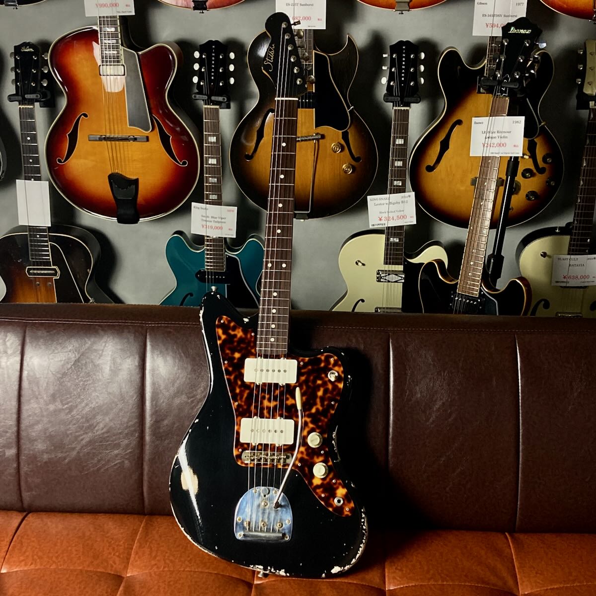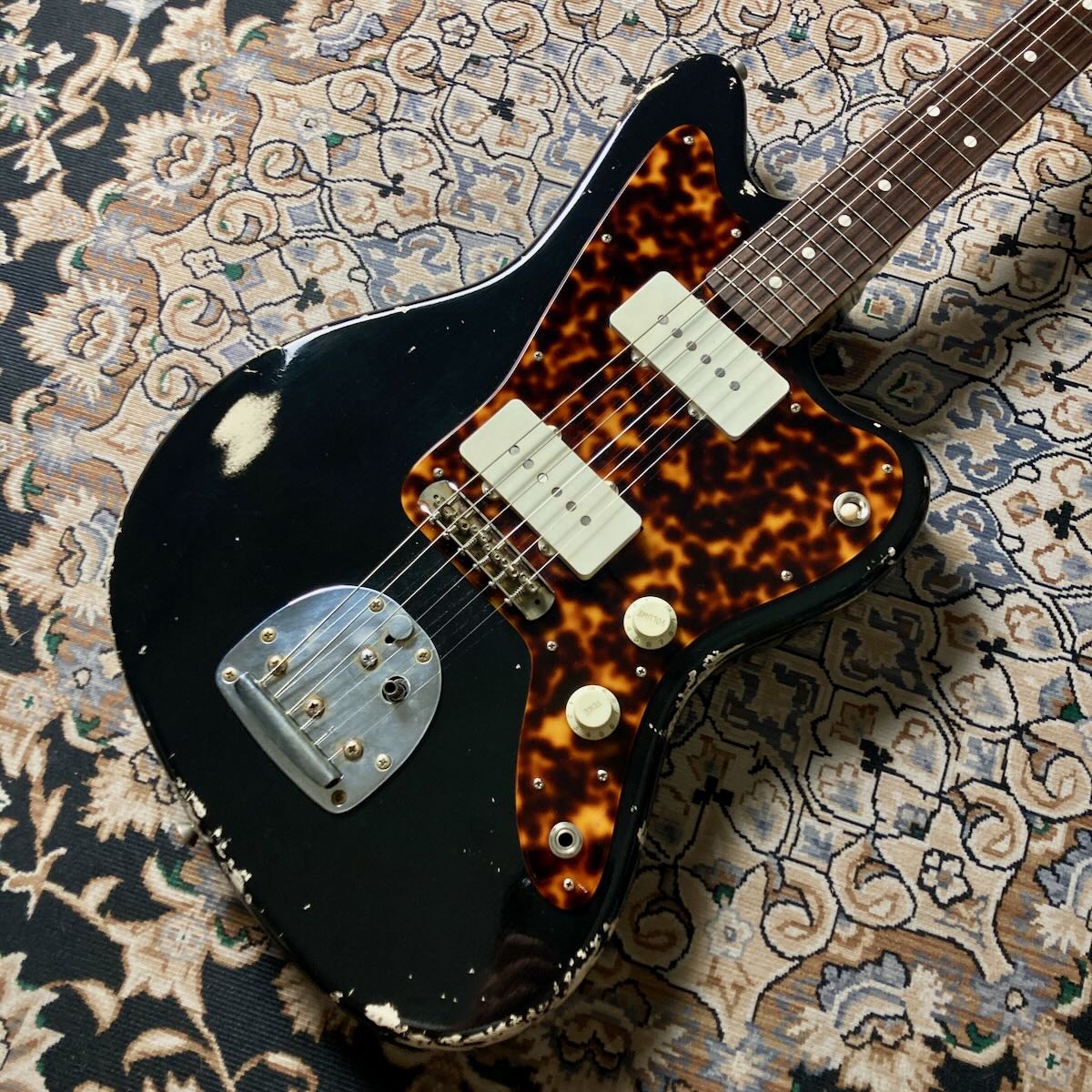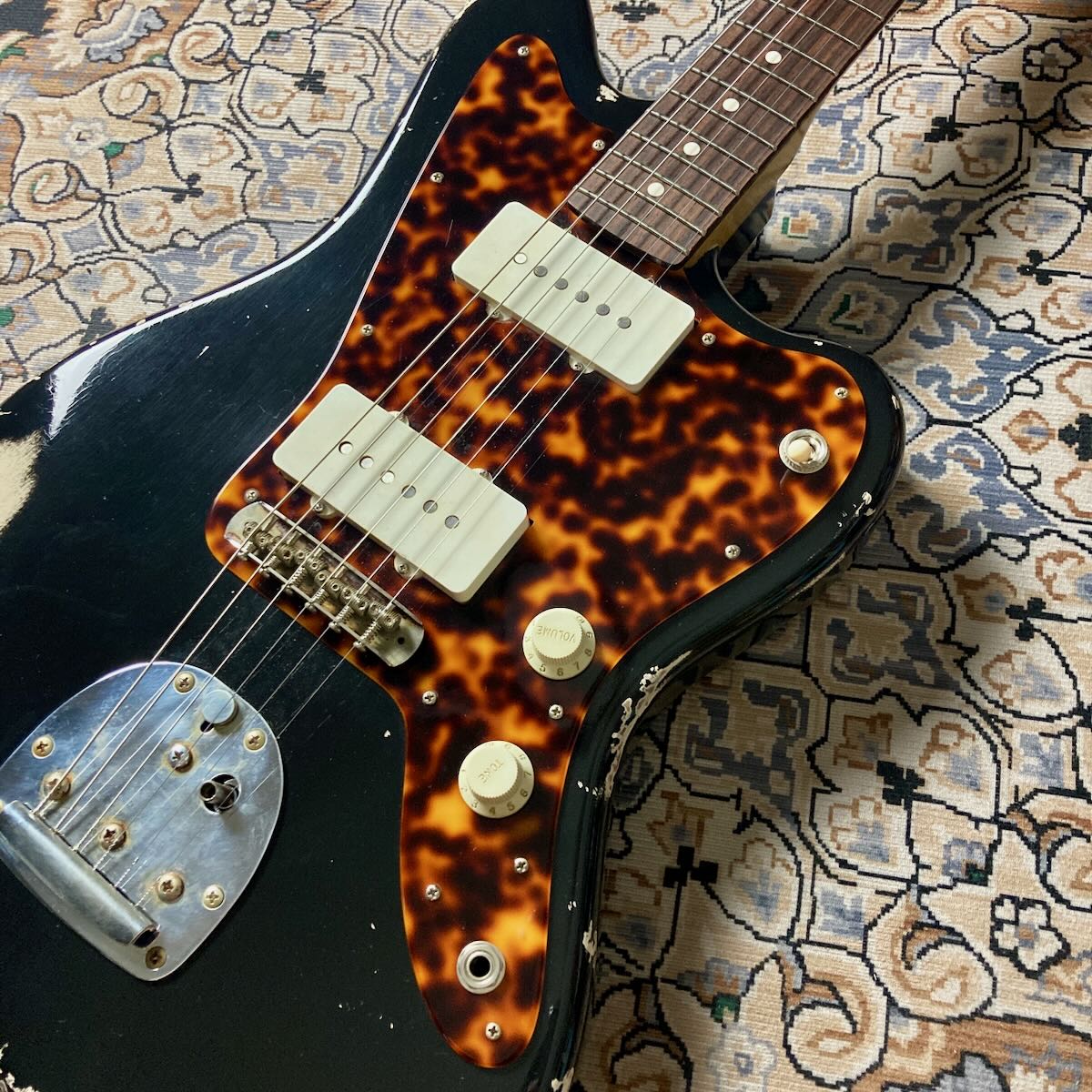伝統的なオフセットボディシェイプのアルダーボディーにメイプルネック、ローズ指板の60s仕様のJMスタイル。