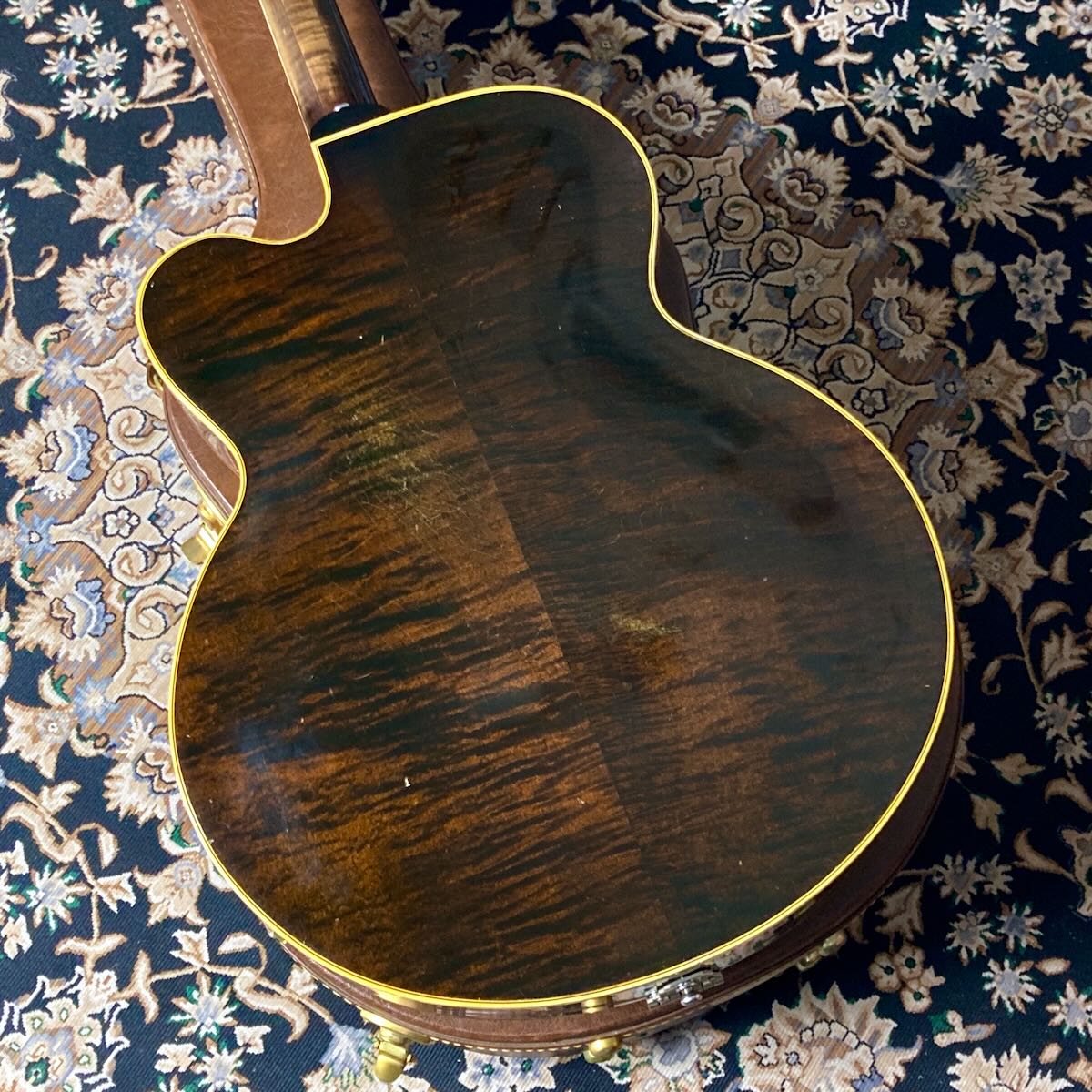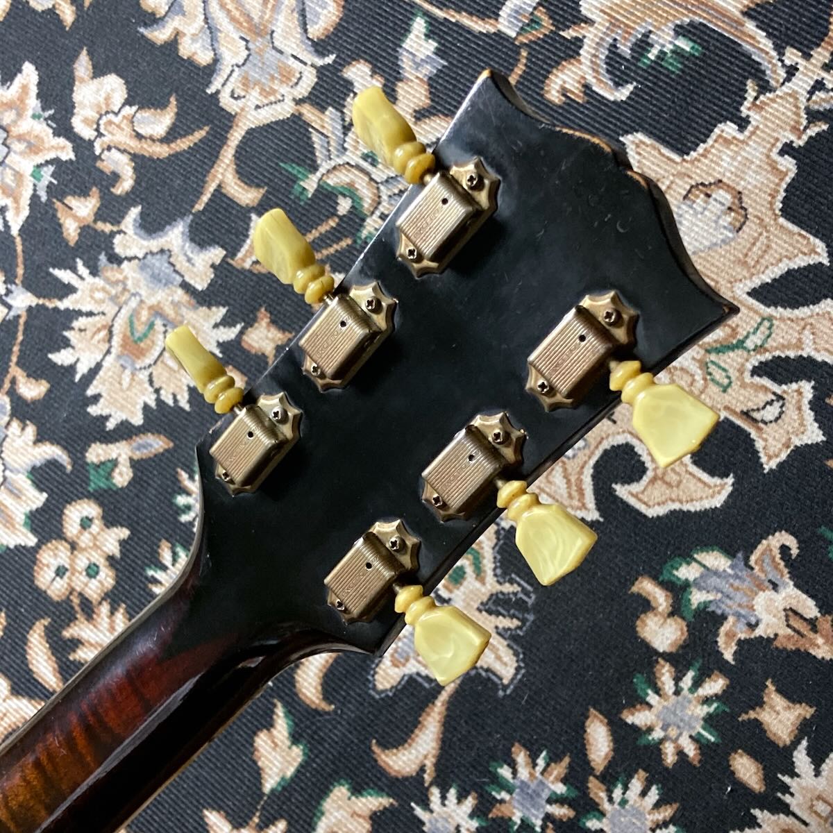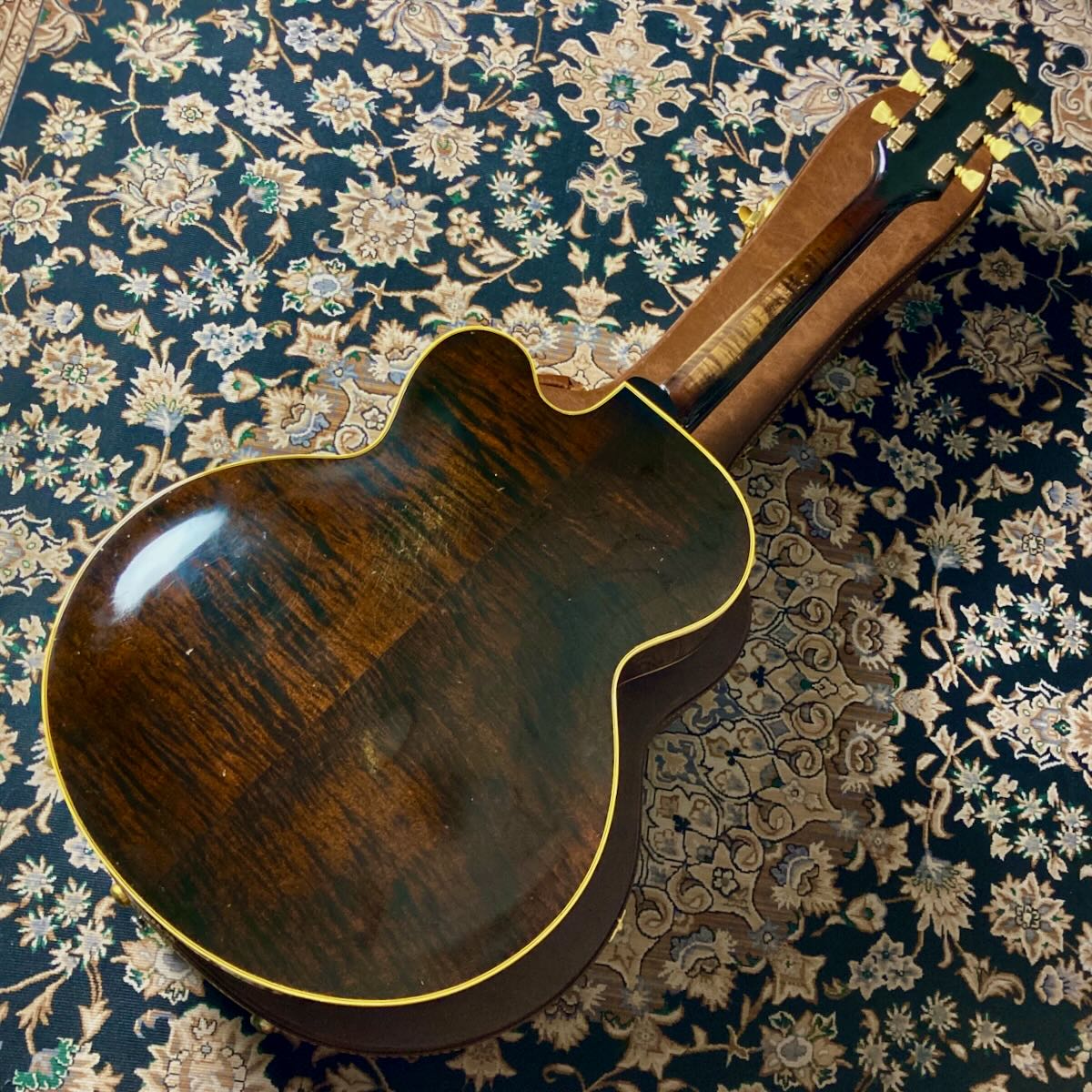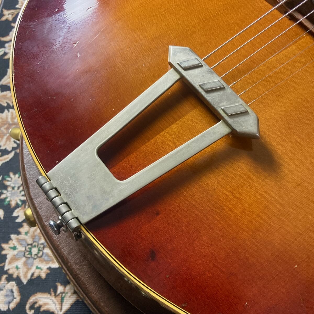 ブリッジサドル部が交換、ストラップピンが交換されヒール部に追加。オリジナルのKluson 2コブ チューナー、トラスロッドカバーはL-5等のCustomロゴのものに交換されています。サウンドホール内のラベルは健在です。
