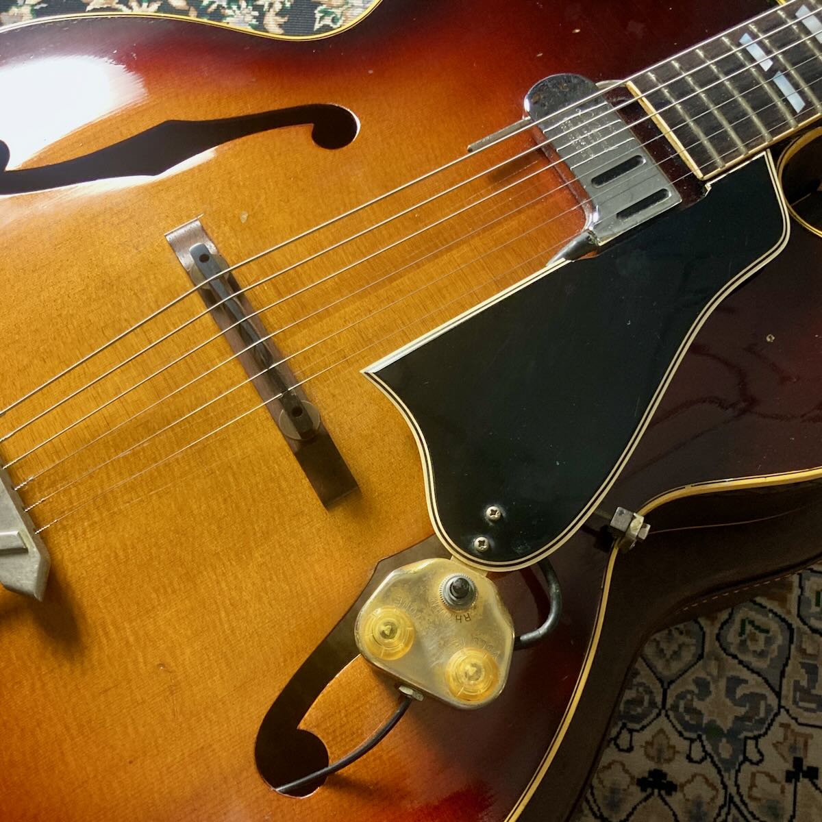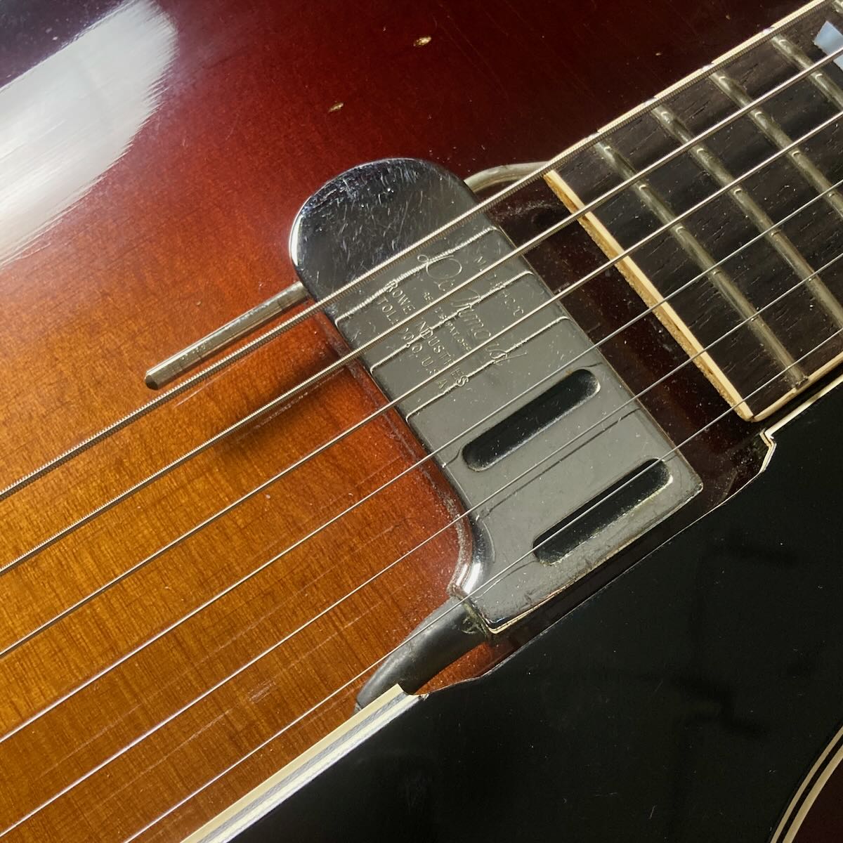 こちらはシリアルから63年製の本体に、50から60年代製と見られる DeArmond FHC P.U(PAT OFF) を後付けしたと見られる個体です。