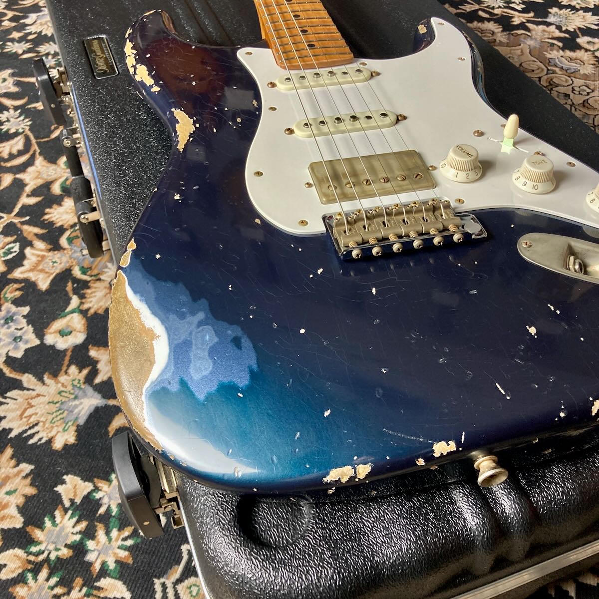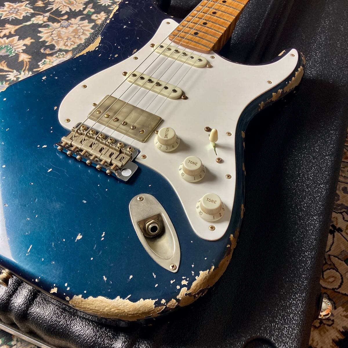 5Aグレードのローステッド・メイプルネックにカスタムカラーのメルセデス・ブルー&圧巻のヘヴィーエイジド!!