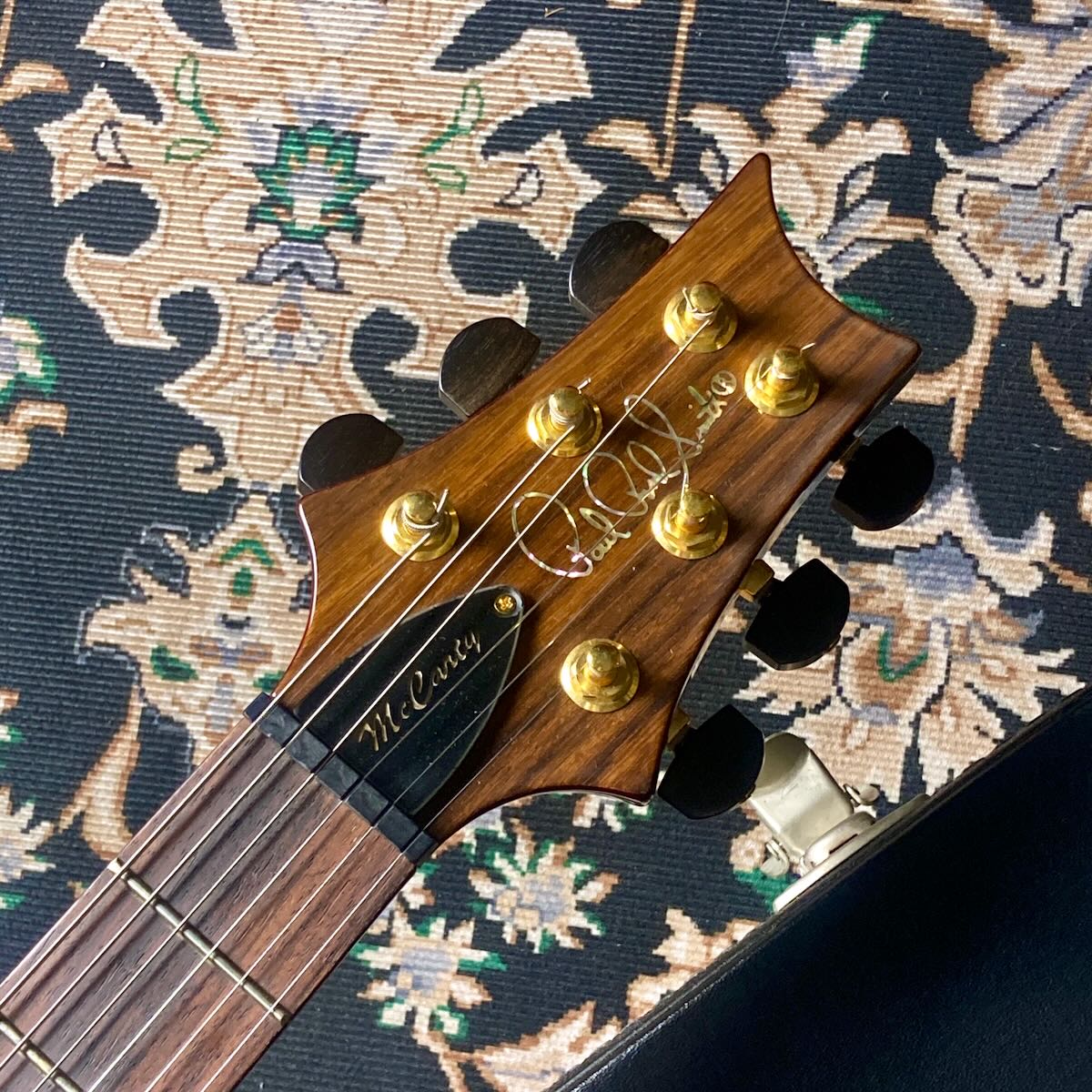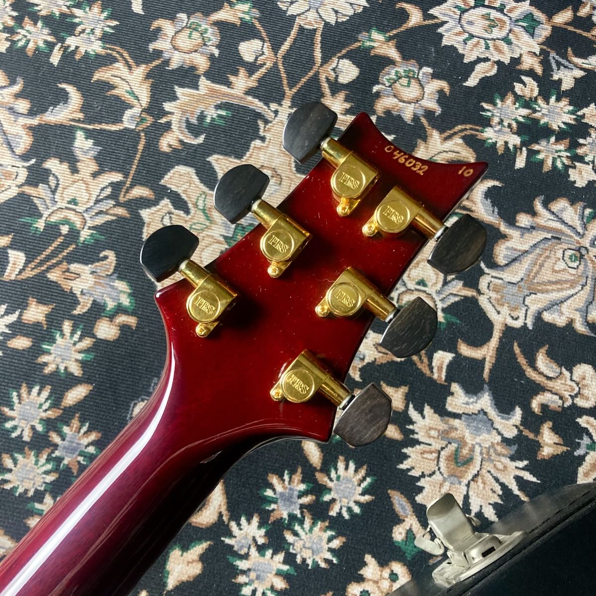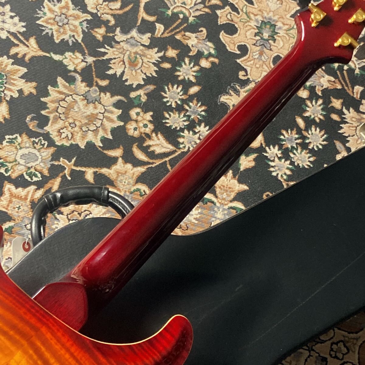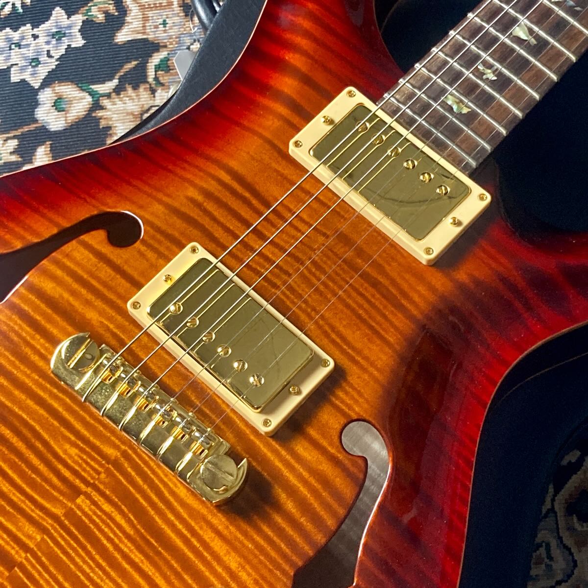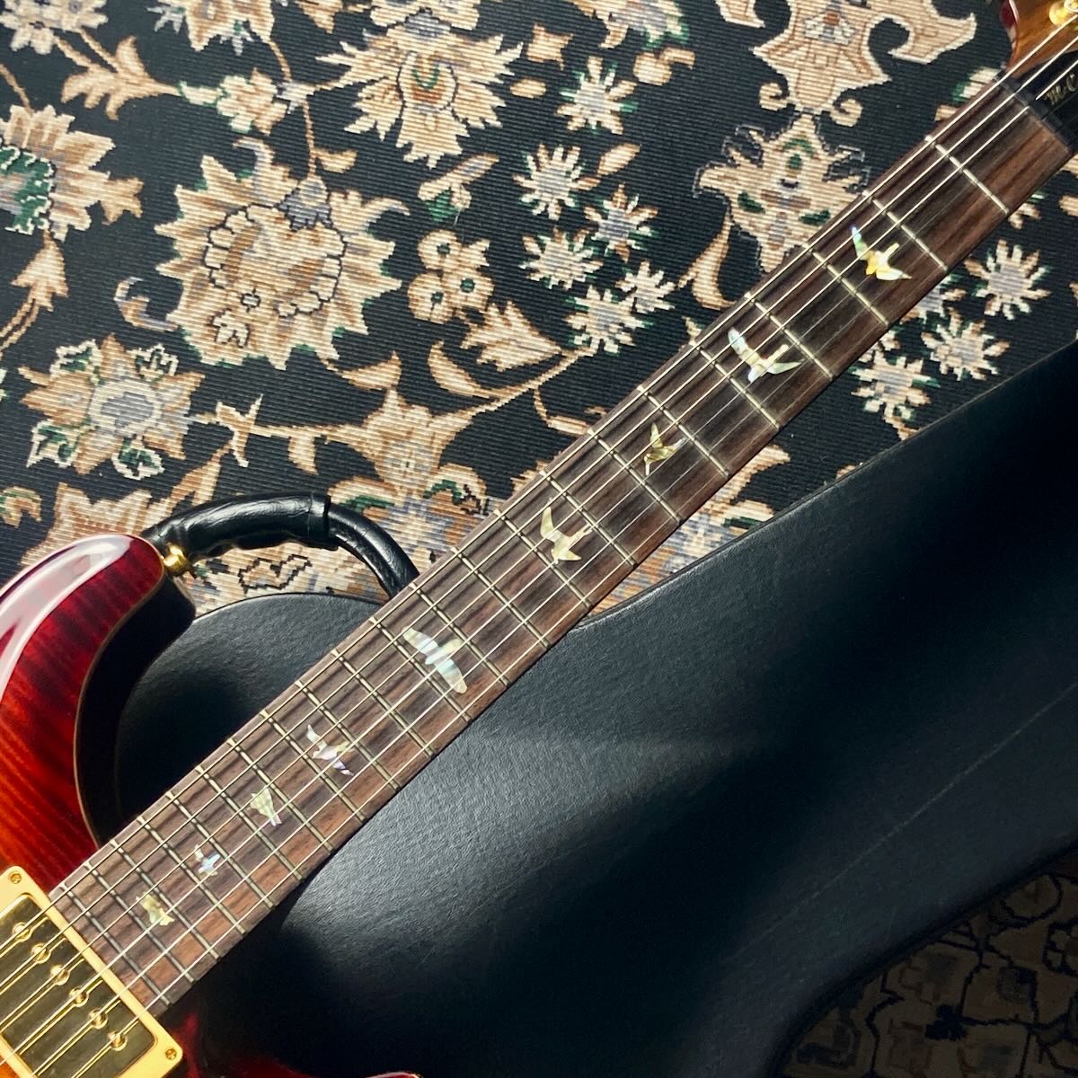 その他、エボニーボタンのノンロックチューナー等のゴールドで統一されたハードウェアとオプション満載の一本です。