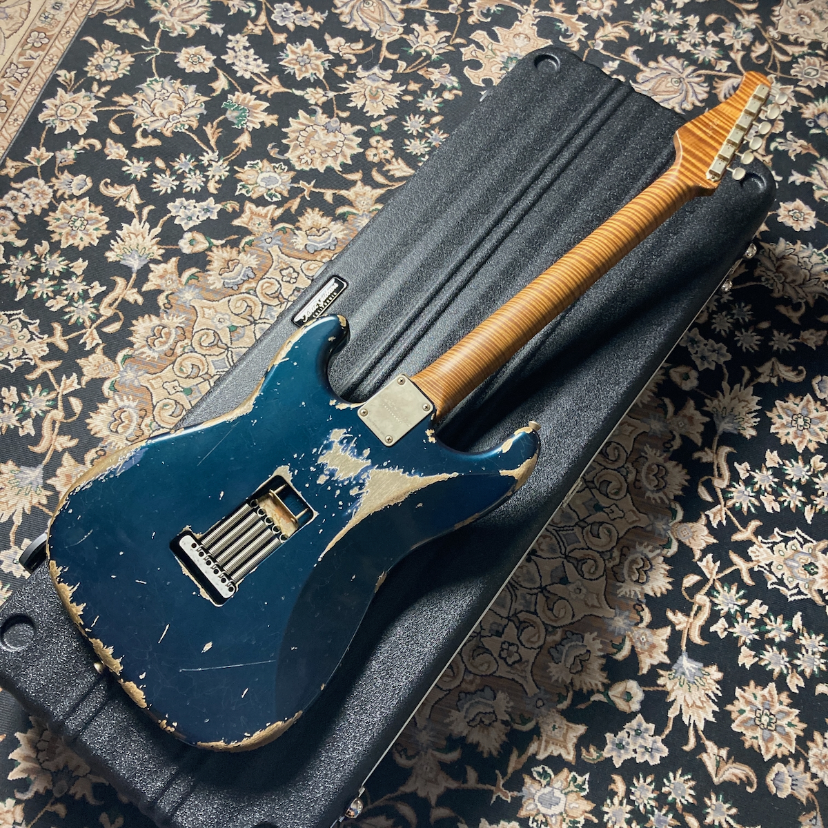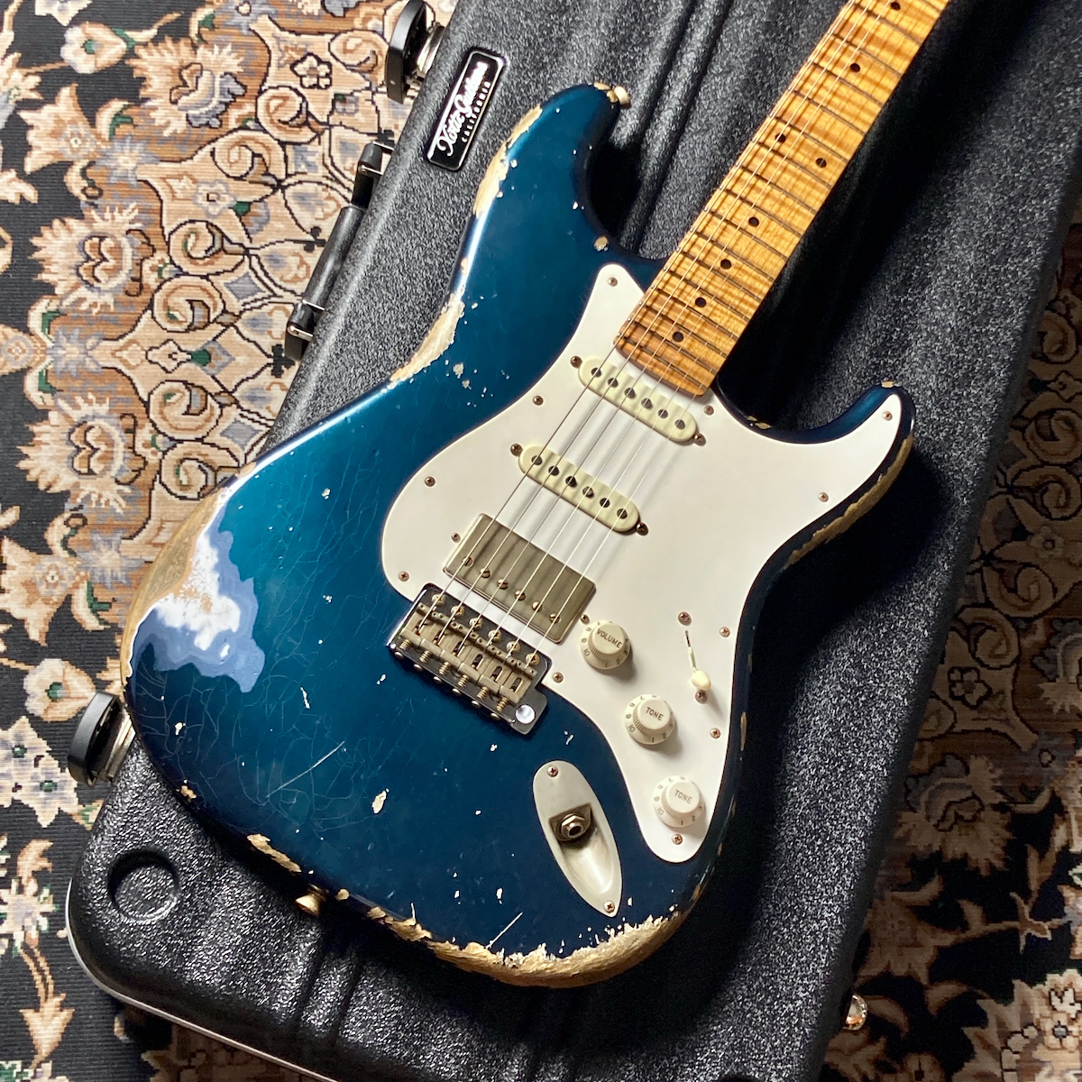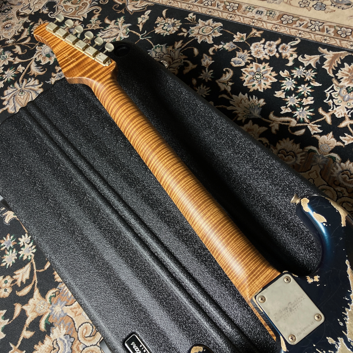 そこにカスタムカラーのメルセデス・ブルーとヘヴィ・エイジドを組み合わせたスペシャルな一本です。