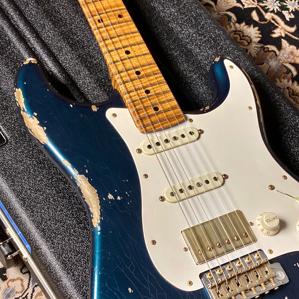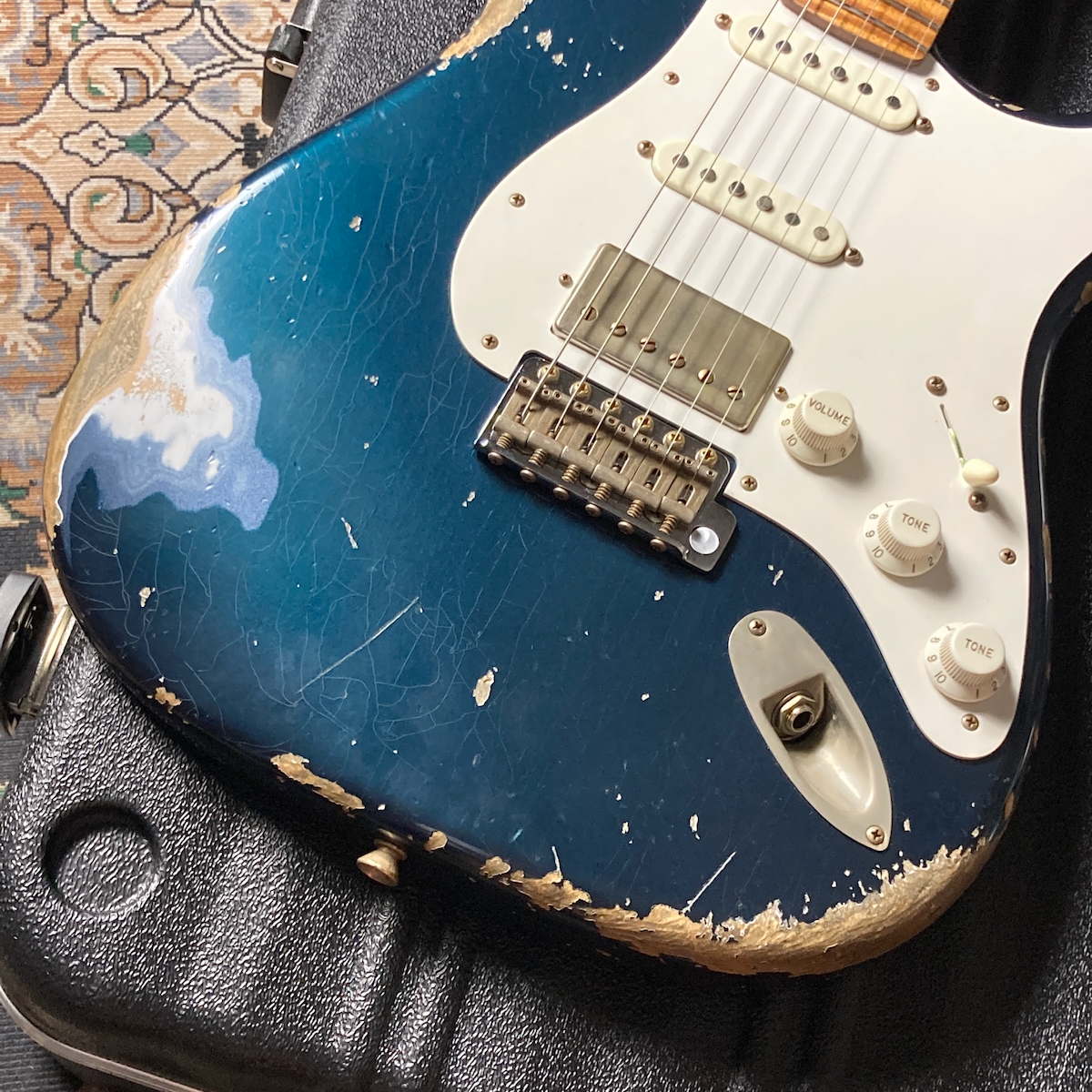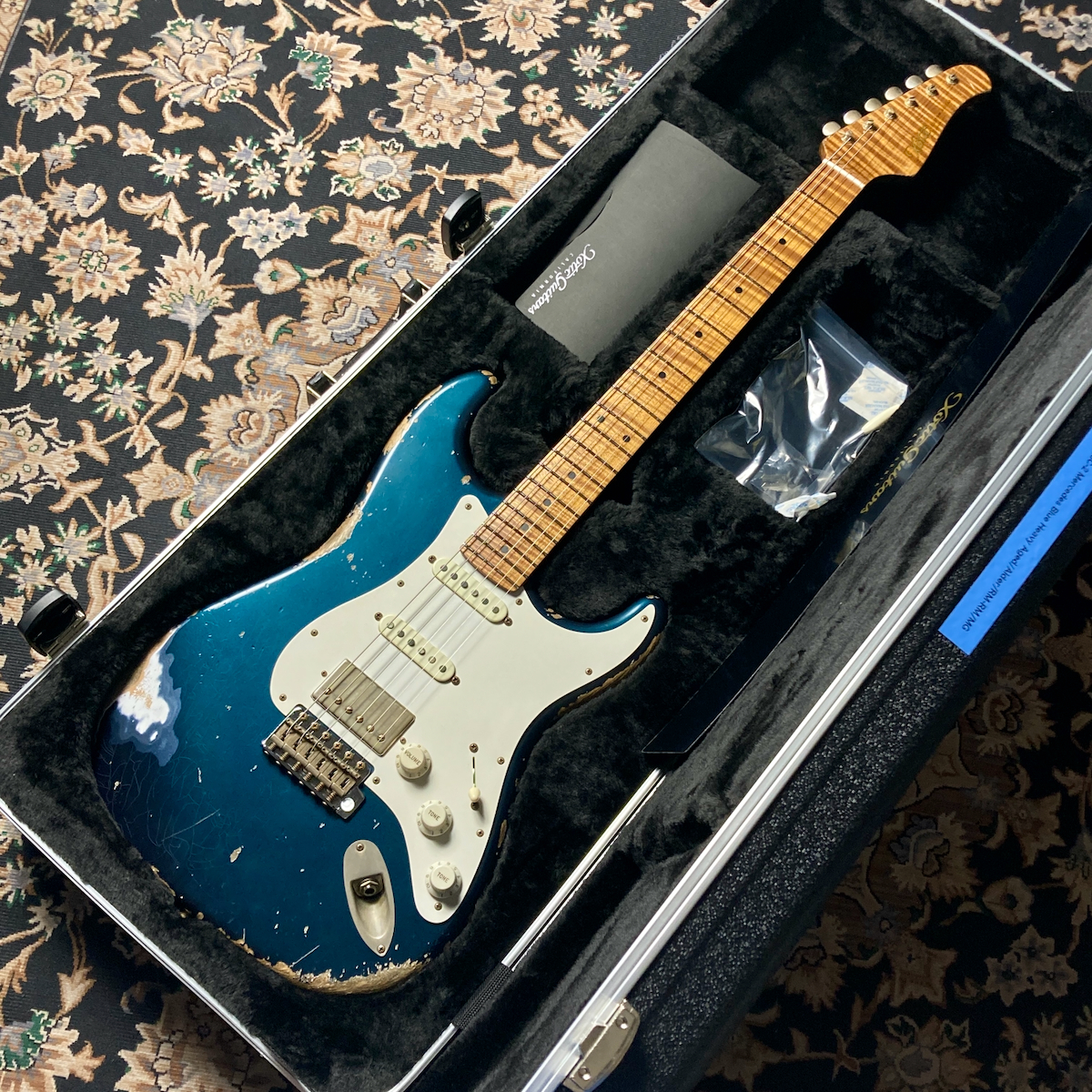 そこにカスタムカラーのメルセデス・ブルーとヘヴィ・エイジドを組み合わせたスペシャルな一本です。