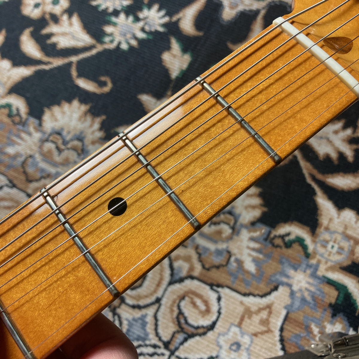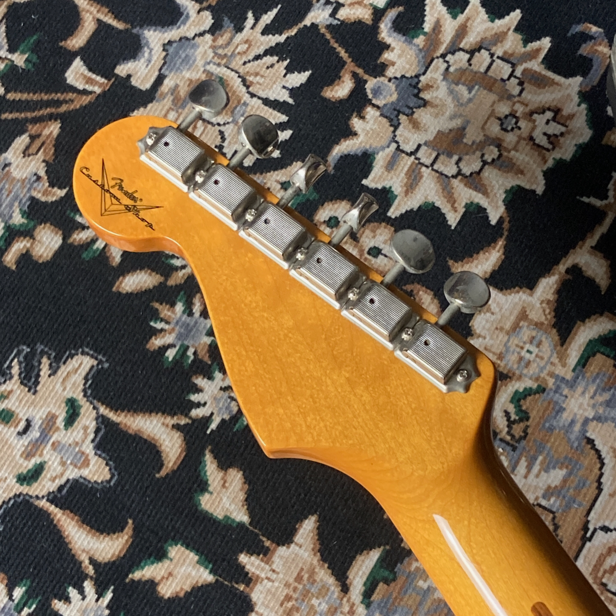NOSバージョンの為、マルチレイヤーではありませんが、最後に差し替えられていた83年製のAM Vintage 57re STのメイプルネックの再現や、ネックP.Uを常時ONにするミニSW、P.Uに Custom Shop Fat ’50s (Neck)/ Custom-Wound Single-Coil(Center)/ Seymour Duncan SSL-5 (Bridge)の採用、また特徴的なショートアームも付属し、可能な限りのルックス、トーン、演奏性を蘇らせています。